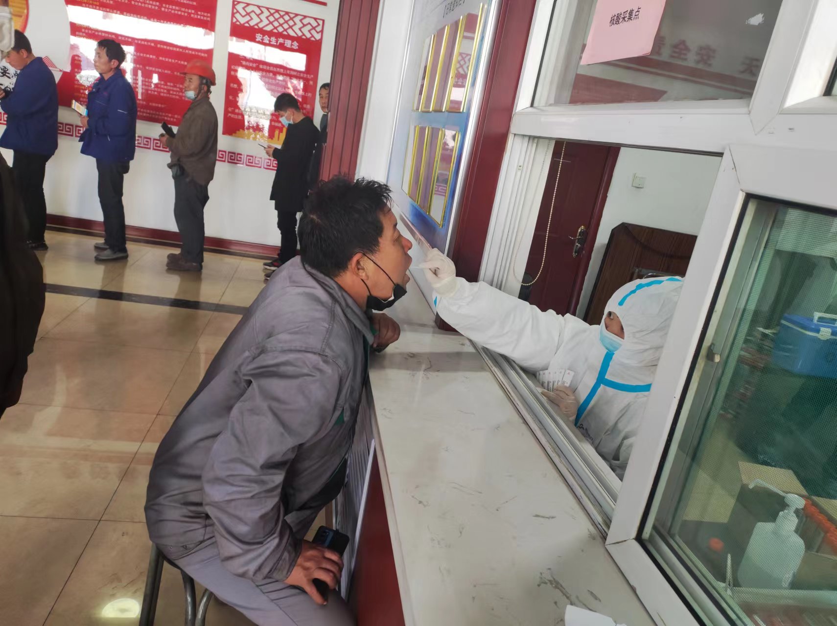 2.體溫測量。礦區(qū)各個(gè)入口處設(shè)專人值守測量體溫,凡體溫超過37.3℃,未正確佩戴口罩的的不予進(jìn)入礦區(qū)。各單位要嚴(yán)格落實(shí)員工“3天一檢”,重點(diǎn)人員“1天1檢”,及時(shí)落實(shí)核酸檢測和查驗(yàn)工作。
